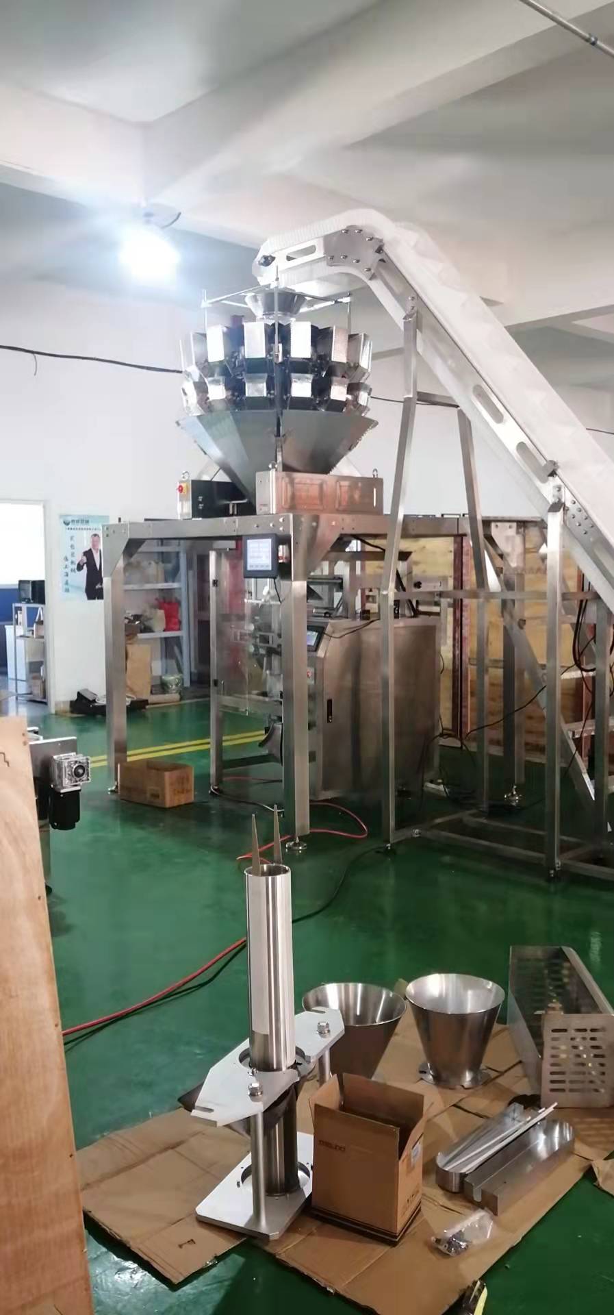 立式給袋式茶葉包裝機生產線主要由給袋式包裝機、四斗秤與工作平臺配套而成,主要適用于洗衣粉、大米、雞精、味精、種子、白糖、飼料、芝麻、茶葉等小顆粒狀物料的自動計量包裝。