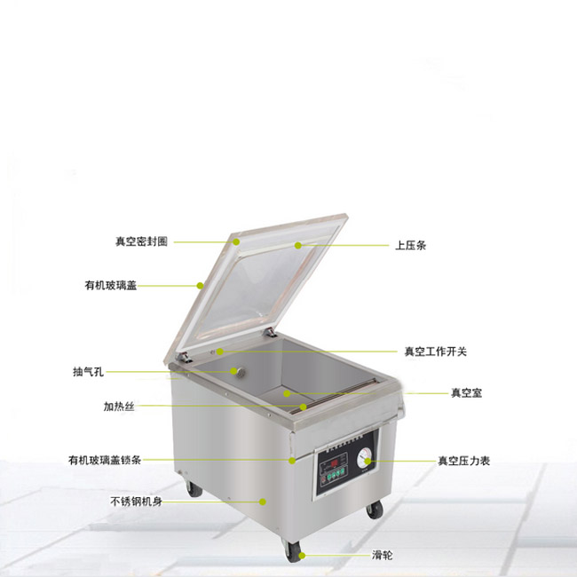 5.真空包裝機使用不銹鋼材料制作,防腐防潮,可以適應比較差的生產環境;保證了機械的美觀性,延長了機械的使用壽命。