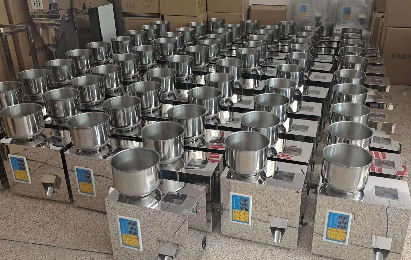 3、按開始鍵,分裝機即開始運行,到達所到的重量后,嘀的一聲,用手去出料口感應一下,物料會自動分裝下來。